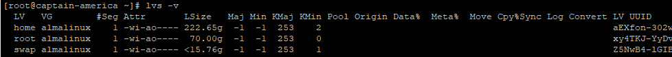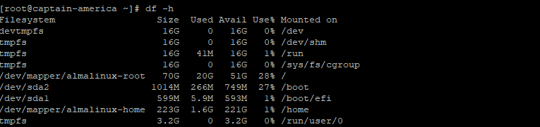/dev/mapper/almalinux-home dizinini küçülterek kalan alanı /dev/mapper/almalinux-root dizinine aktaracağız.